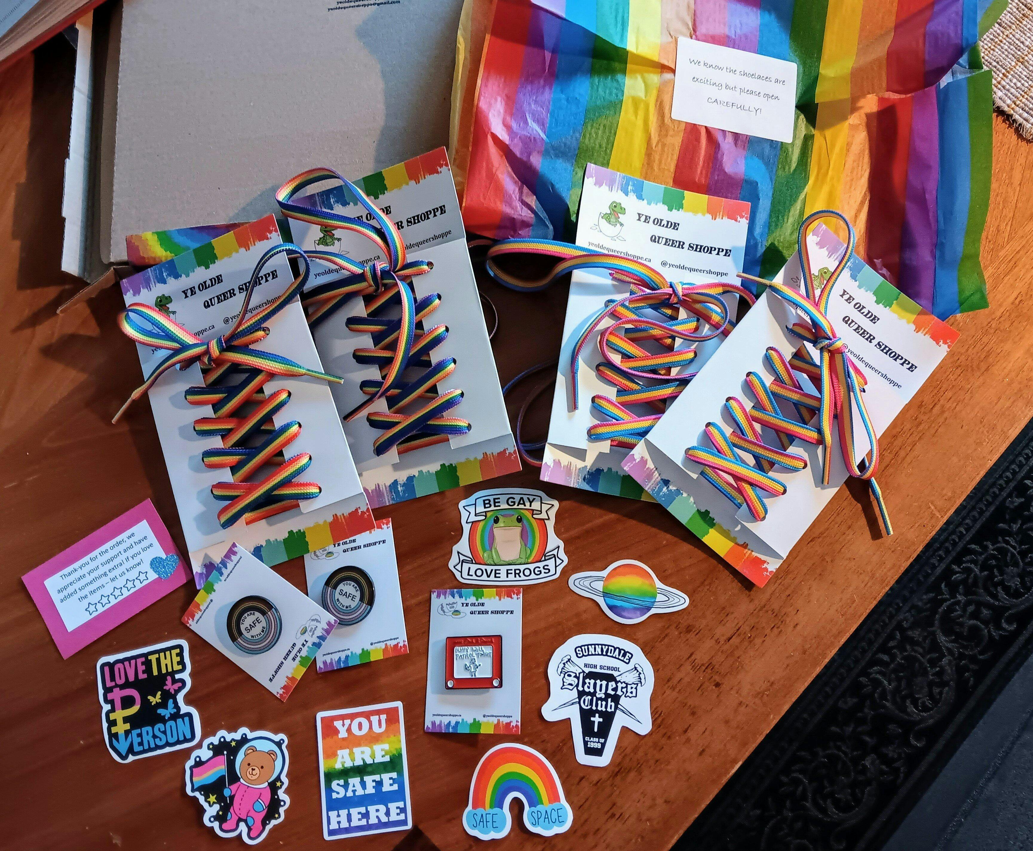 I LOVE these laces! And working with Ye Olde Queer Shoppe has been easy; fantastic customer service and they go beyond the call of duty. The laces are high quality, easy to tie, and are holding up great. The little note and freebie stickers are a great touch, too. I couldn't be happier.